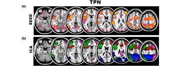 The task-positive network (TPN), ảnh từ: Vemuri P, Jones DT, Jack CR Jr. Resting state functional MRI in Alzheimer's Disease. Alzheimers Res Ther. 2012 Jan 10;4(1):2. doi: 10.1186/alzrt100. PMID: 22236691; PMCID: PMC3471422.